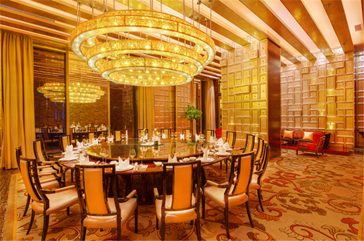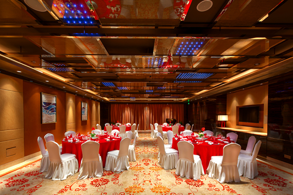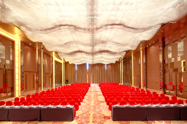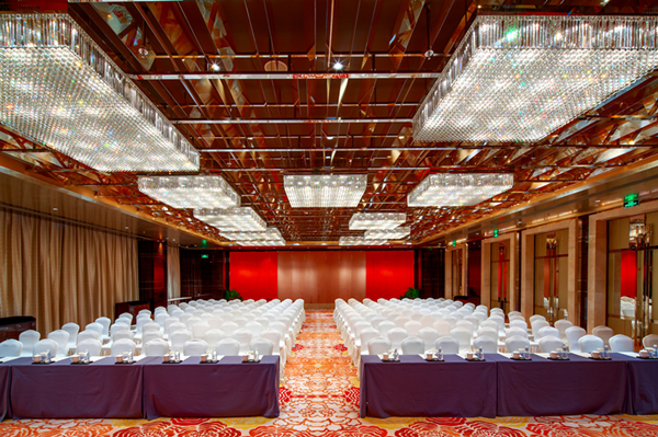 酒店拥有700平米层高8米无柱宴会厅,配以现代化的顶尖数字会议指示系统、投影系统、同声传译系统及最先进的灯光音响设备。