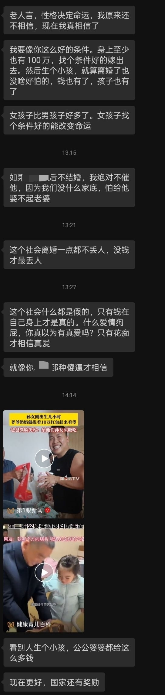 你妈是靠彩礼骗钱的? 难怪现在人都不愿意给彩礼了 这就种人太多了