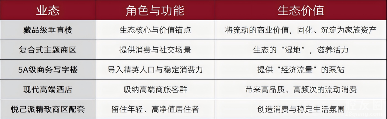 这个生态的绝妙之处在于写字楼和酒店的人,在商业区消费;公寓和垂直楼的业主,享受繁华。所有业态相互喂哺,形成一个内循环。而这其中,垂直楼,是这个生态里唯一能将流量彻底私有化、资产化的产品。