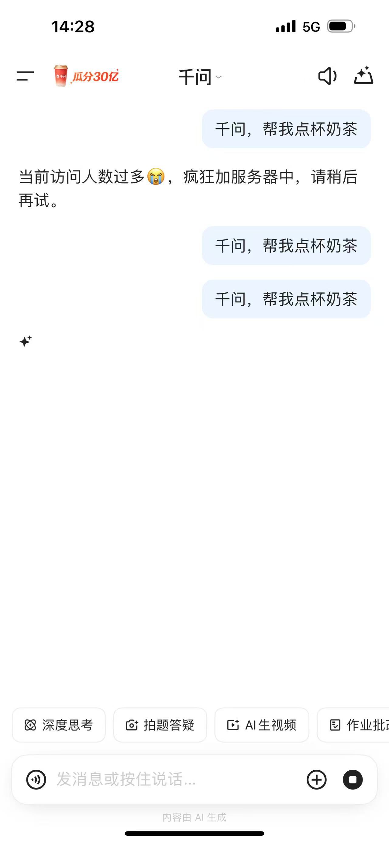 千问20亿奶茶一杯都轮不到我吗?
