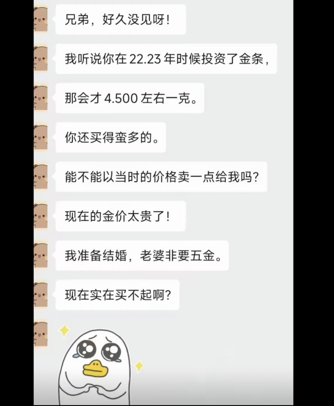 之前的同事 当时买了黄金在同事间聊天 今天突然收到他的消息