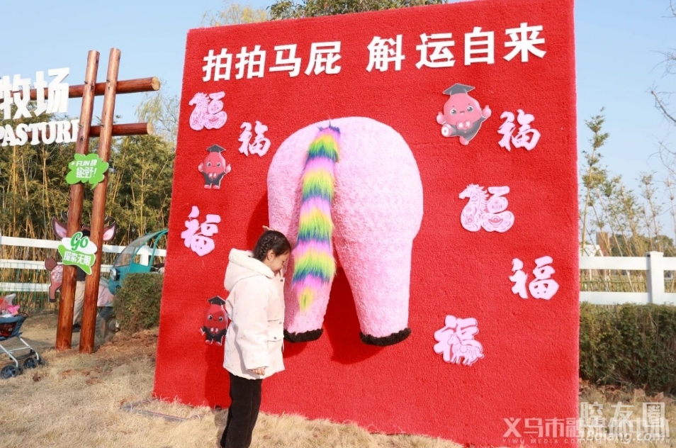 而在不远处的森山牧场里,巧妙设置了“拍马屁”“马上有钱花”等马年主题趣味打卡点,让游客朋友们可以“拍拍马屁,新年讨个吉利”。牧场内一匹憨态可掬的矮脚马吸引众多游客驻足围观,“这是我们为了迎接马年特意引入的动物,希望能在新一年为大家带来更多欢乐。”森山健康小镇负责人笑着介绍。