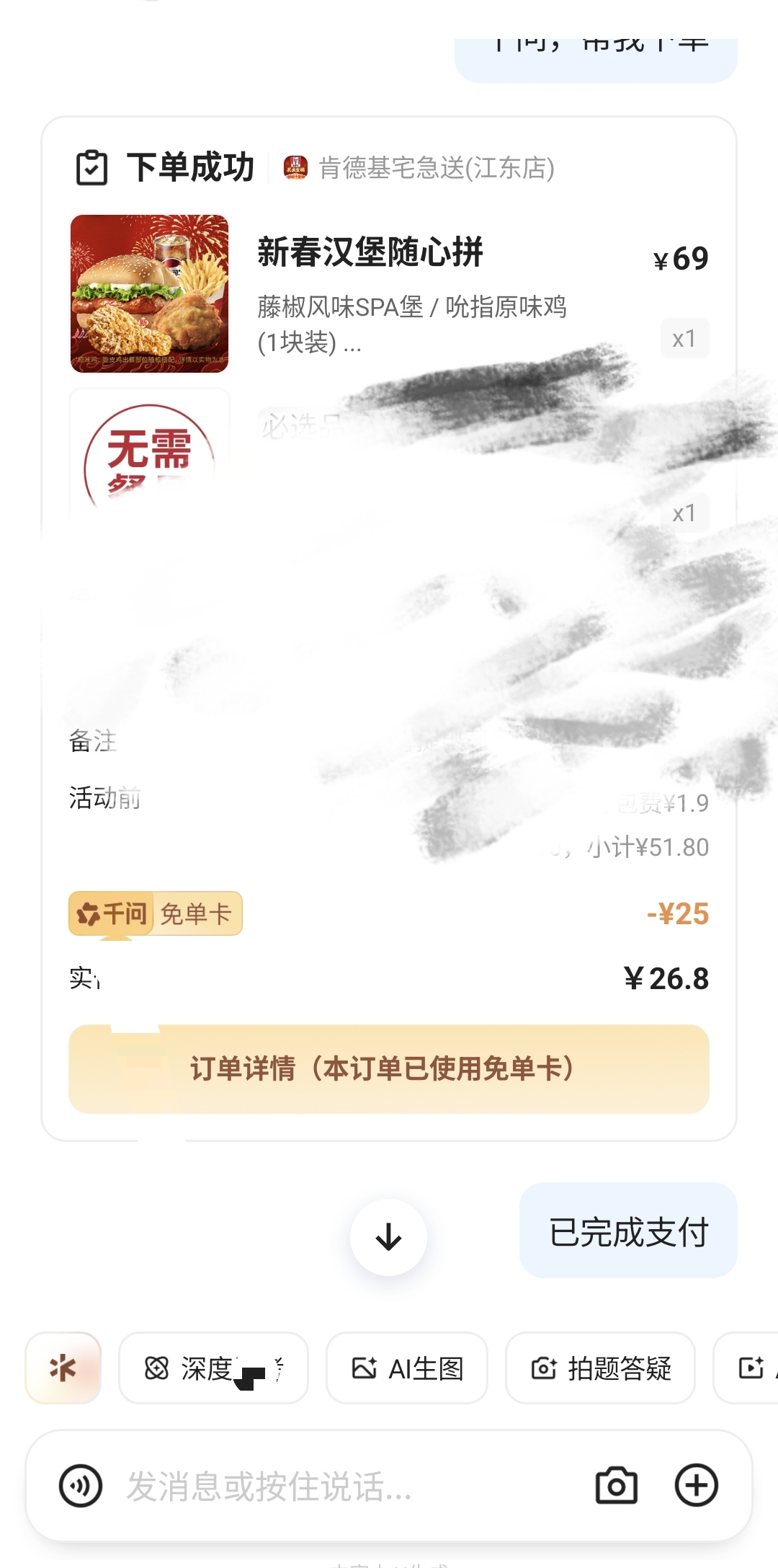 点了肯德基外卖减了25