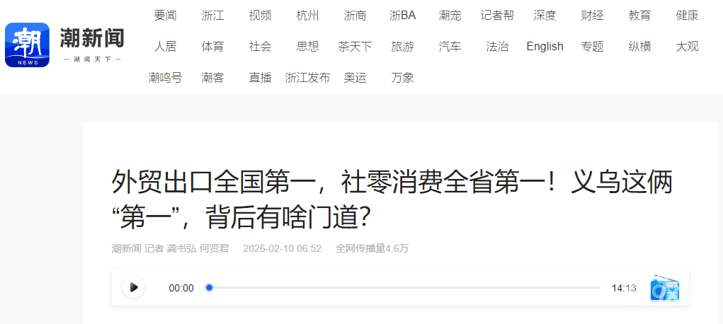 原文标题:外贸出口全国第一,社零消费全省第一!义乌这俩“第一”,背后有啥门道?