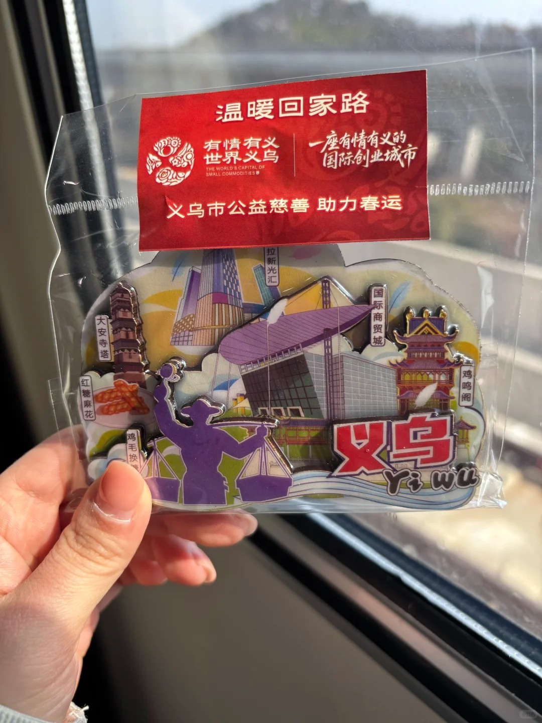 现在去坐火车都有小纪念品了?不过确实义乌再慢慢变好,从开始的步梯到现在的自动扶梯。世界义乌,温暖回家路,谢谢小姐姐送的冰箱贴