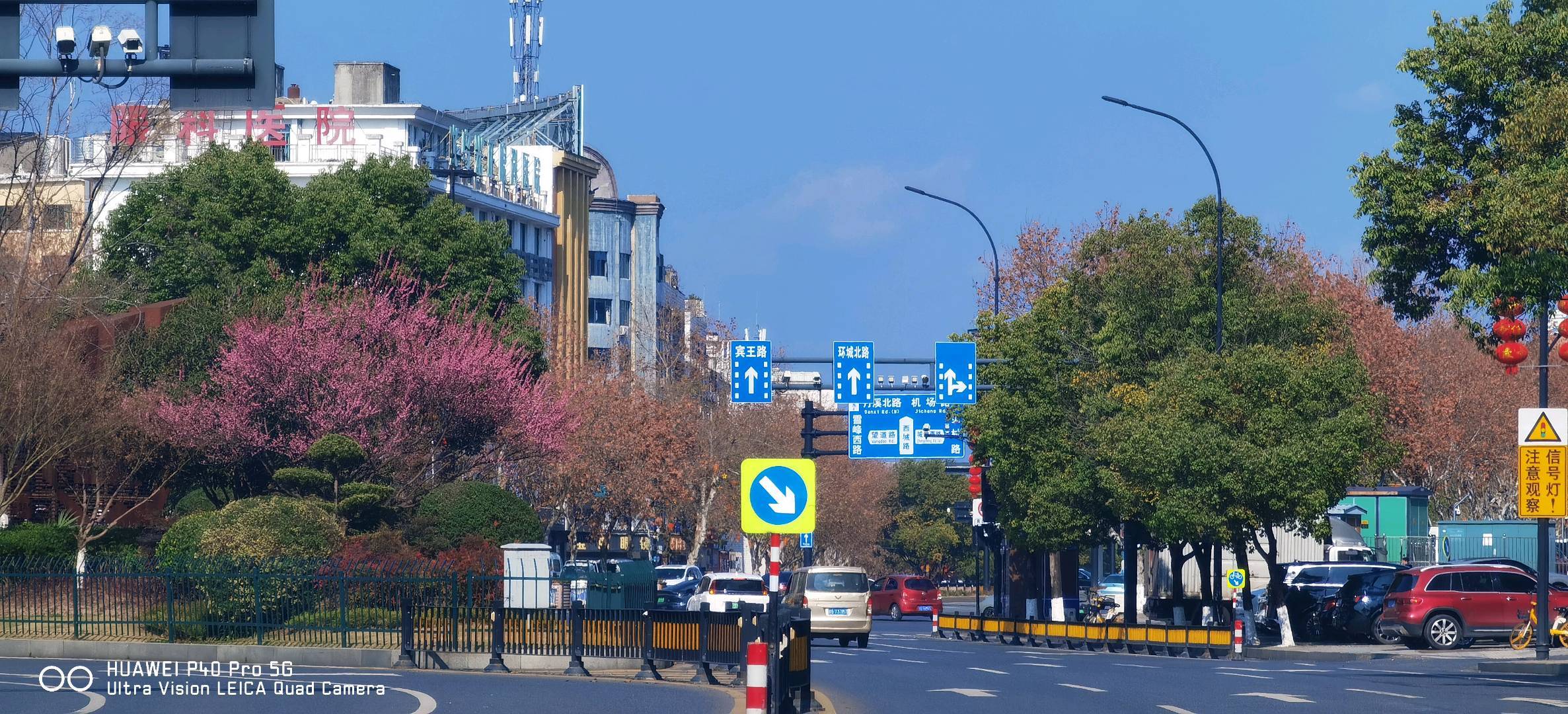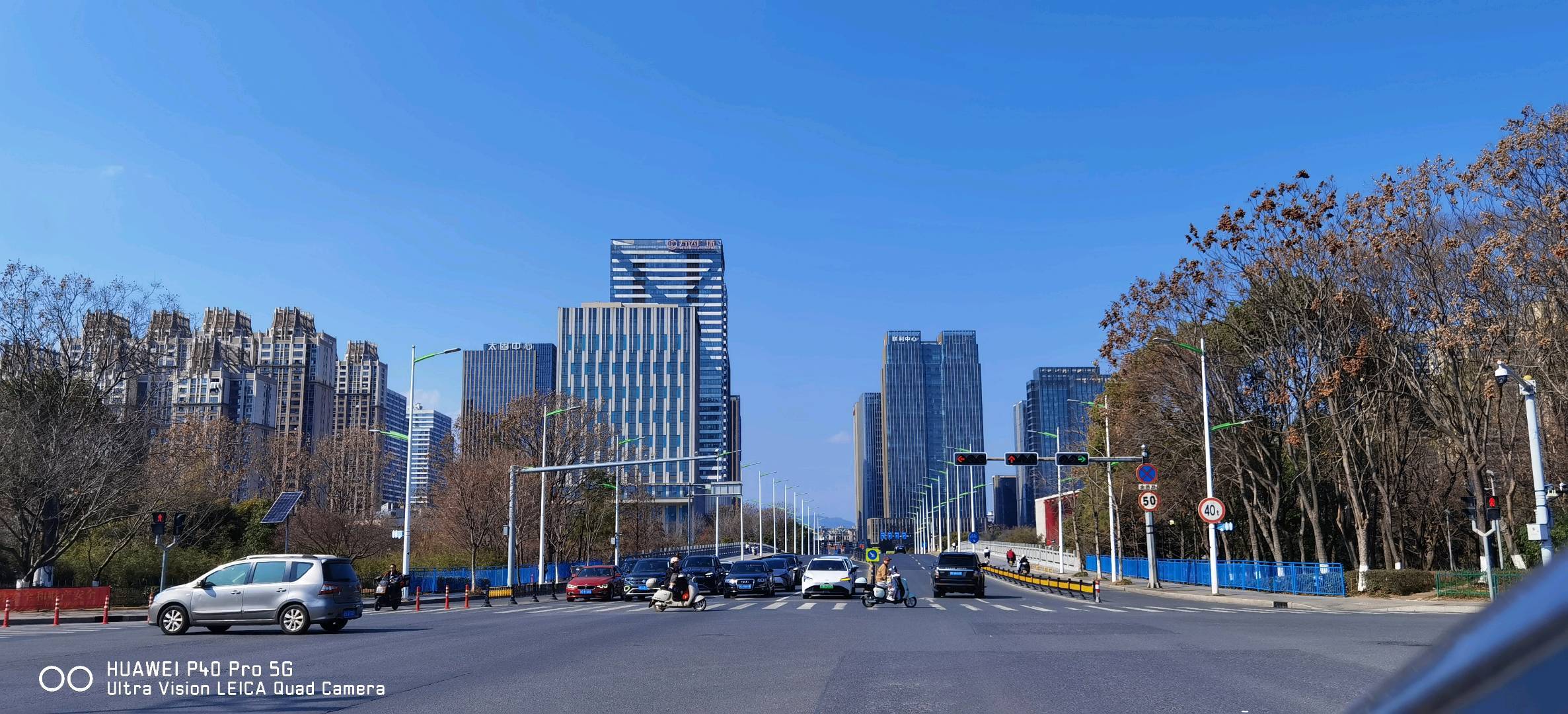 蓝天映着现代感十足的高楼,街边的树悄悄秃了枝桠,仿佛在轻声说着:年末已至,是时候回家啦。路上的车流也变得稀疏,偶尔几辆摩托车驶过,反而显得格外悠闲~