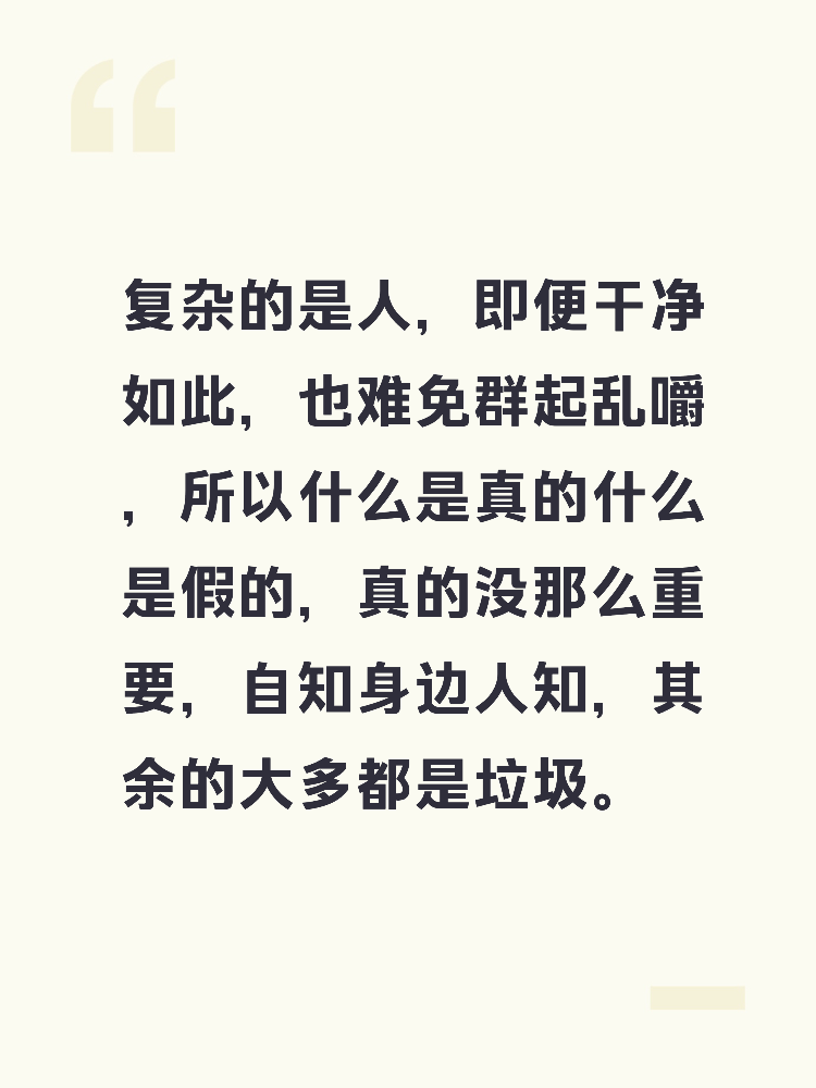 我们深知对与错只是偏向与自私,论迹论心,都高出对方太多,反而要经受对方的口舌是非,有太多人的自以为是对方多么善良,于是口诛笔伐,不知没有对方那边的参与,我们只是你,我,其他人也就是陌生人的关系,以讹传讹罢了谁还没经历过只是不知道,放从前它是杀人凶手,放现在它也不遑多让,它乐在其中,我们苦中作乐!