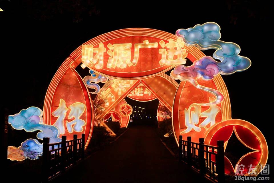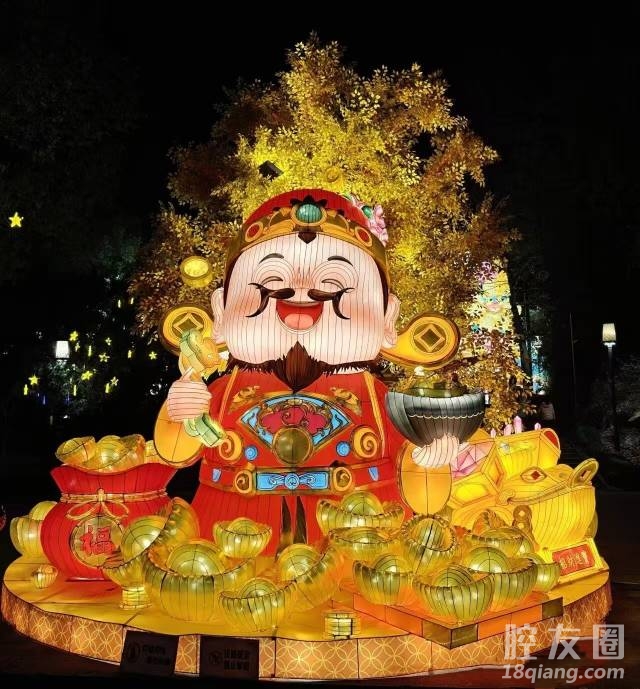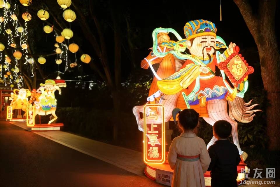 刚睡醒就迫不及待上来发帖!昨晚跟家人去新昌大佛寺逛灯会,人山人海那个热闹啊,结果你们猜我看到了啥?正好赶上“迎财神”主题灯组亮灯!