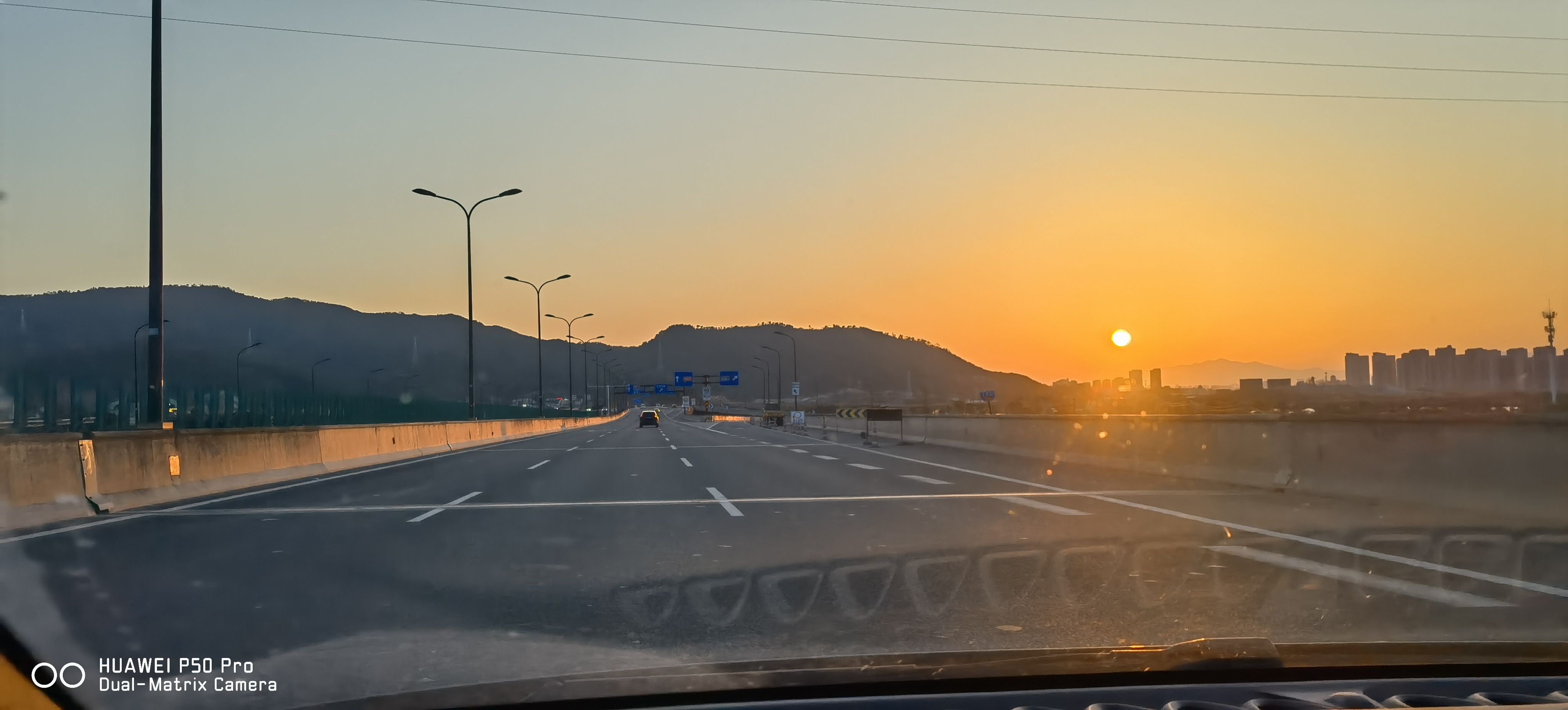车里看世界真的有种不一样的氛围感~ 透过前挡风玻璃拍的,华为P50 Pro的双矩阵相机确实有点东西!