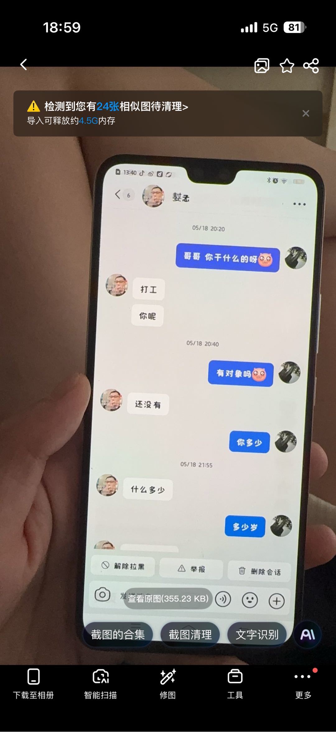 打开 十八腔手机APP - 消息 - 扫一扫