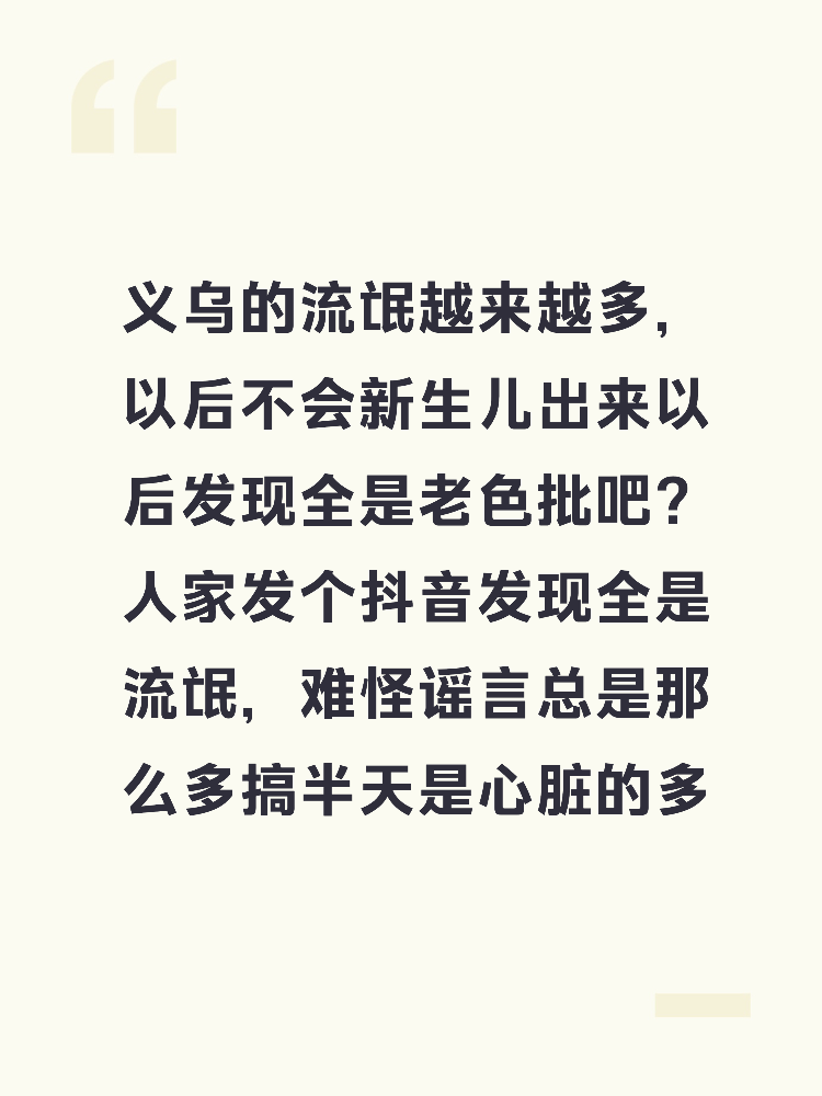 平等的鄙视义乌所有造谣者,流氓,不管是工作中的,还是已婚的未婚的,造谣别人工作的,不管本地外地一律低劣品质!不管在义乌混的多牛!造谣可耻,传谣的一样可耻!