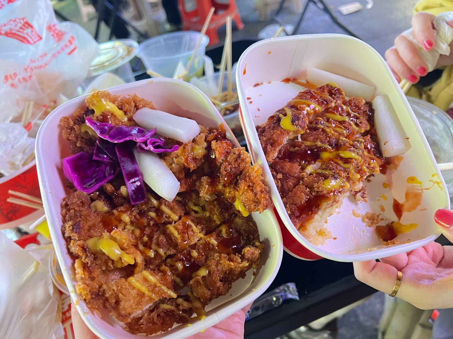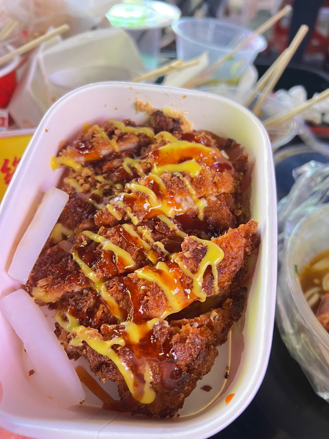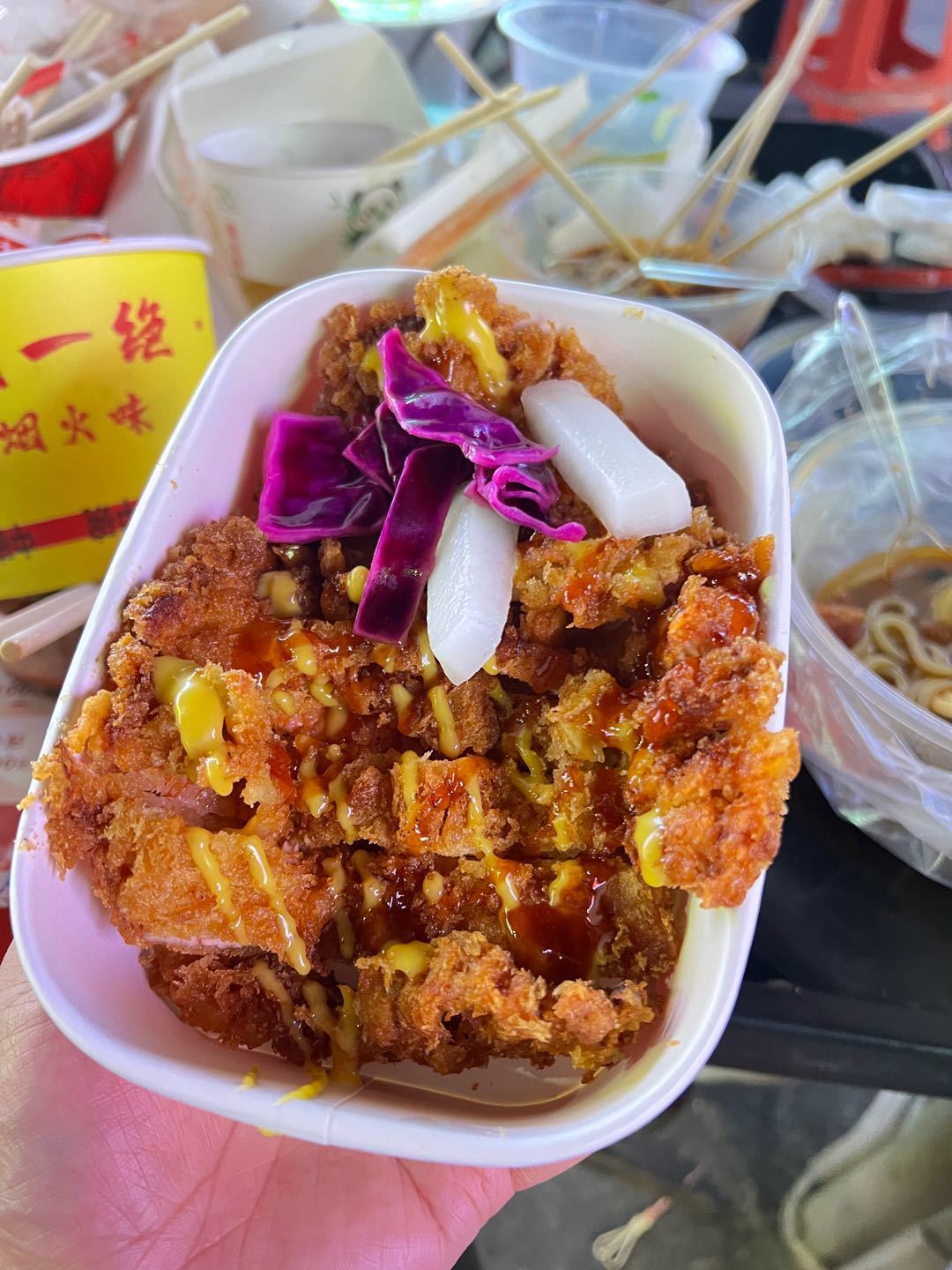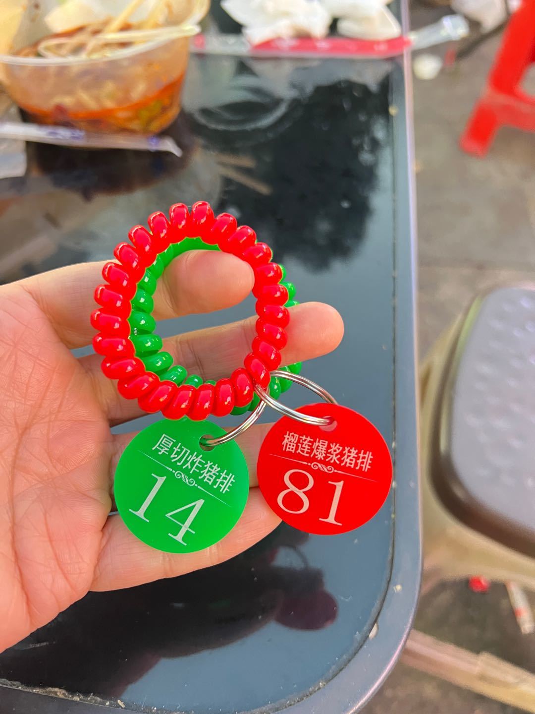 看到视频推荐,就来工商夜市了,老完就看到一群人在排队,就在手打里脊肉隔壁,先是付款再拿号牌,等到叫号取肉。