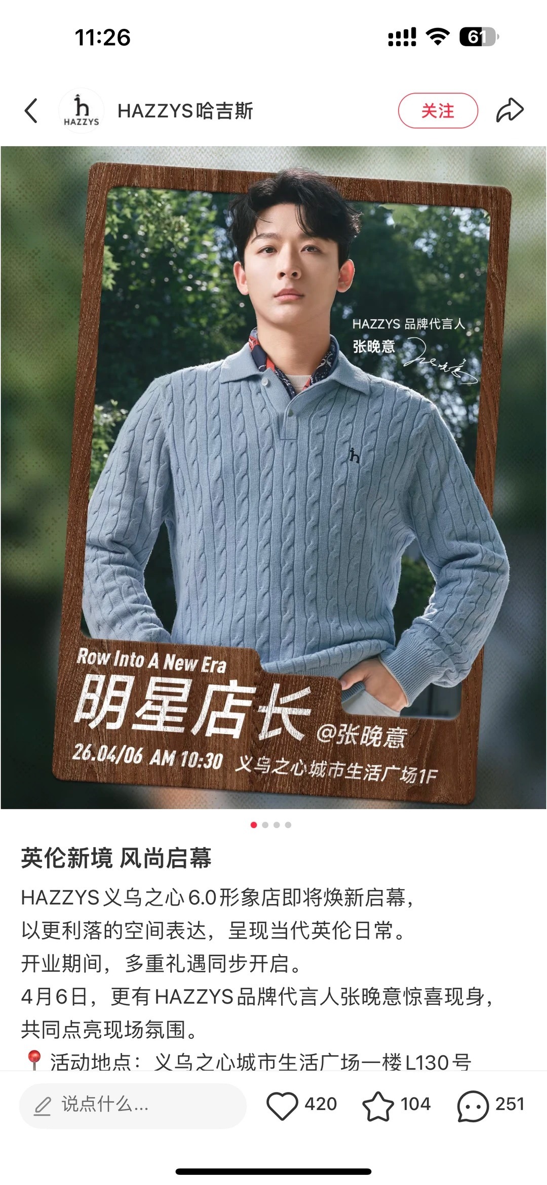 张晚意真的会来义乌之心吗