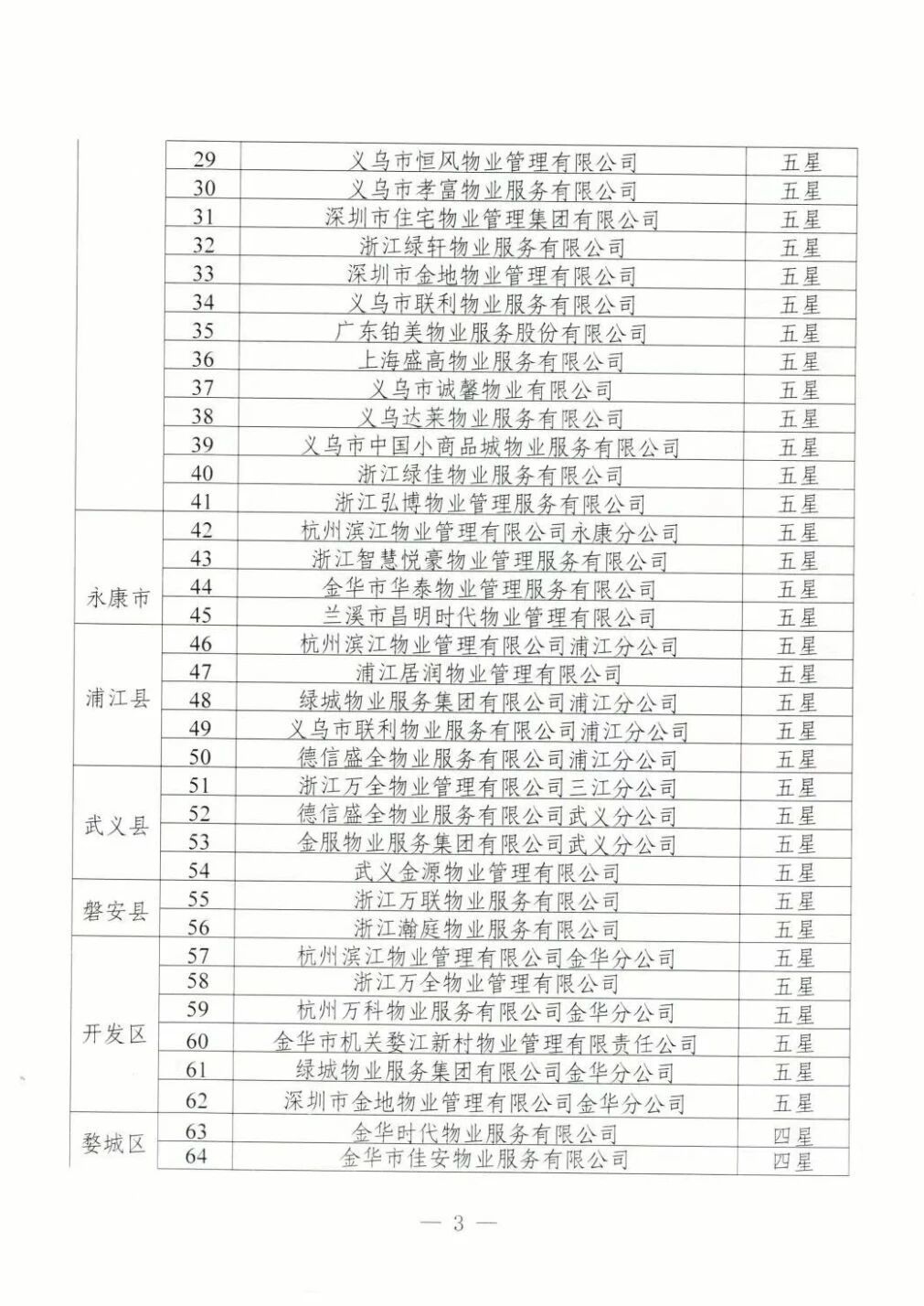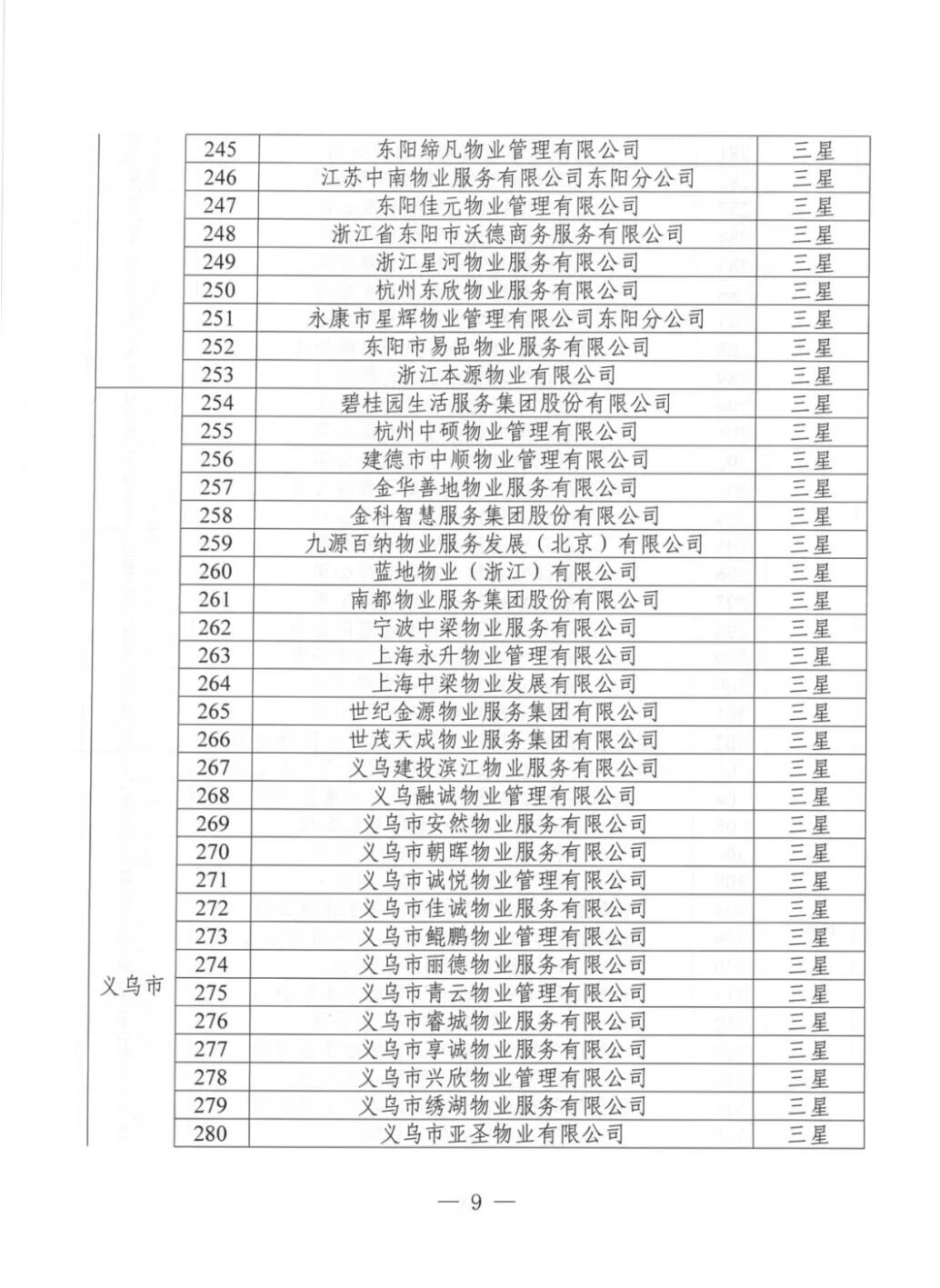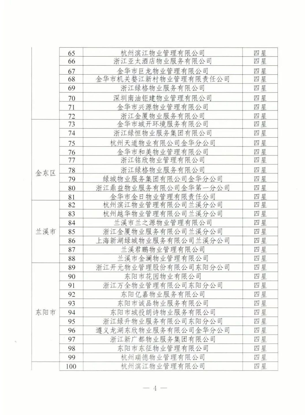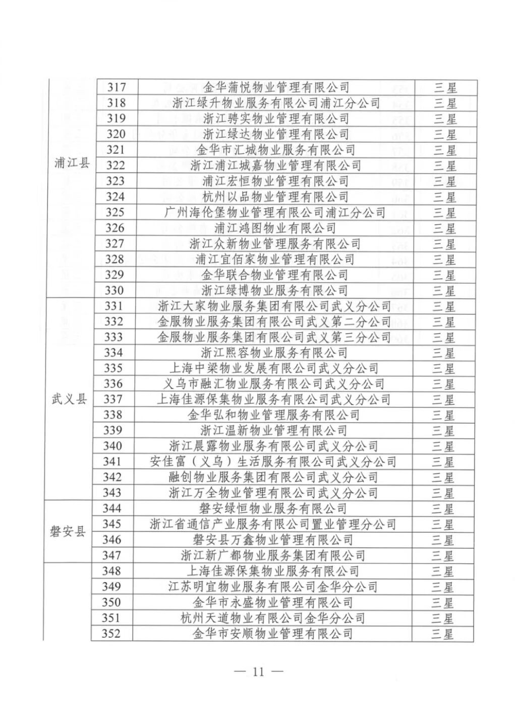 为加强物业服务行业自律,提高物业服务企业水平,优化群众生活居住环境,根据《金华市住宅小区物业服务质量评价办法(试行)》(金市建〔2023〕189号)《金华市住宅小区物业服务质量评价评分标准(试行)》等文件要求,通过街道(乡镇)评价、物业主管部门复核,现将下发物业服务企业星级评定结果。