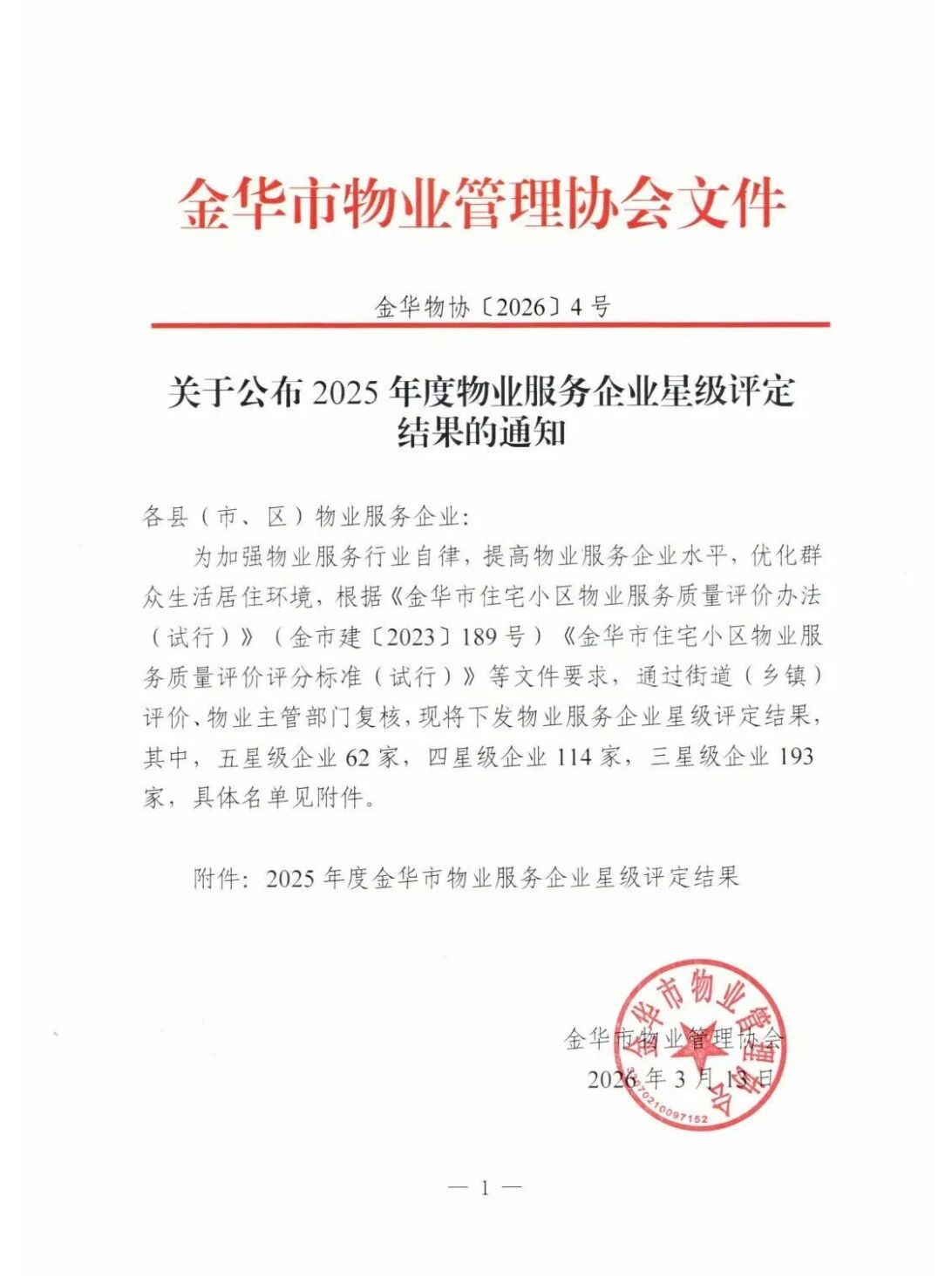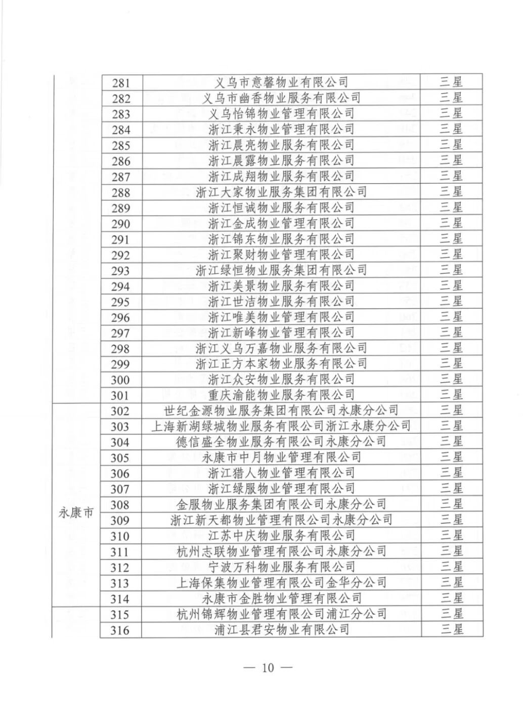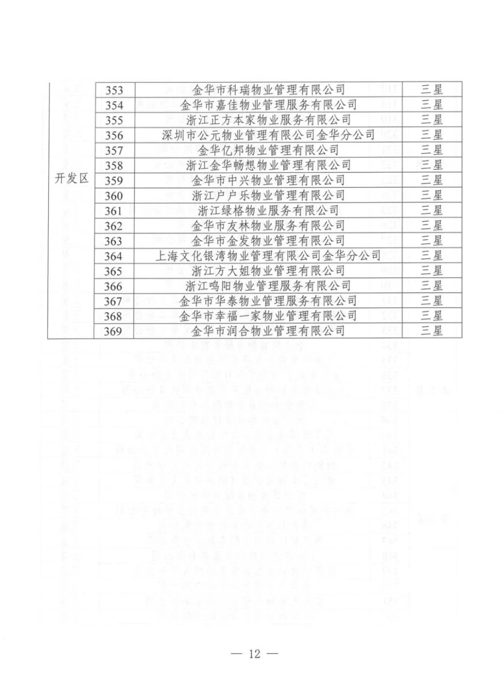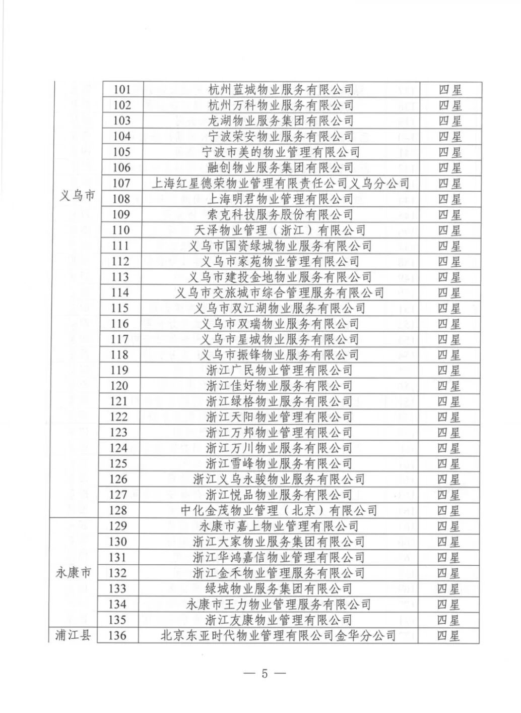 为加强物业服务行业自律,提高物业服务企业水平,优化群众生活居住环境,根据《金华市住宅小区物业服务质量评价办法(试行)》(金市建〔2023〕189号)《金华市住宅小区物业服务质量评价评分标准(试行)》等文件要求,通过街道(乡镇)评价、物业主管部门复核,现将下发物业服务企业星级评定结果。