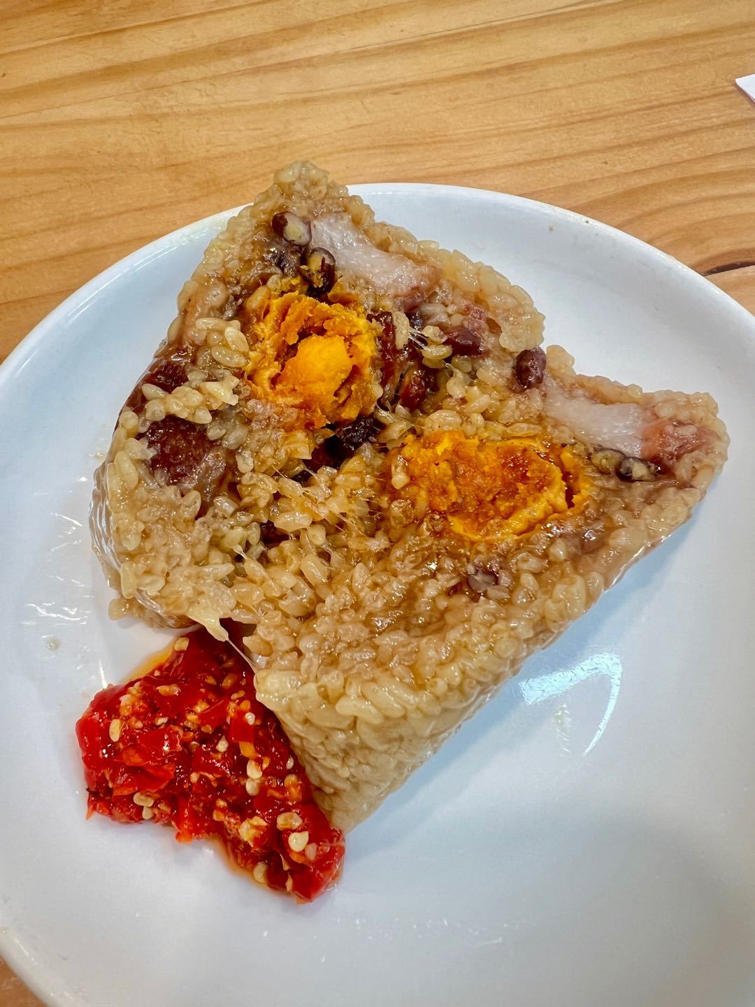 藏在下埠头老巷子里的老店了,早年还记得是黄底红字招牌,重新装修后也很宽敞亮堂了。点了猪肉蛋黄香菇豆子粽子10元,咸饭+鸡腿21元,瘦肉鸡蛋肠粉8元。本来只点了咸饭和肠粉,看到一旁包的粽子,看着就不错,就又加点了粽子,吃起来真不错,几口就旋完了。肠粉依旧分量很大,满满一大盘,料给的很多,也很新鲜,肠粉皮挺薄的,酱汁也很有特色,这回吃饱了,下回可以直接冲豪华版了。