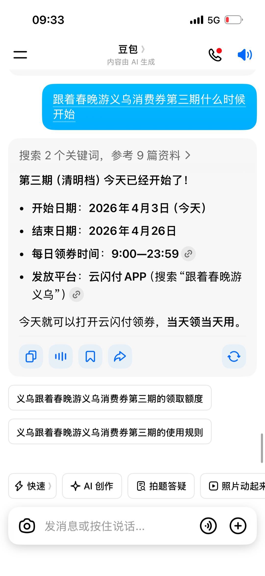 豆包告诉我义乌消费券第三期开始了<e>难过</e><e>难过</e><e>难过</e>所以到底什么时候开始,云闪付里没有啊