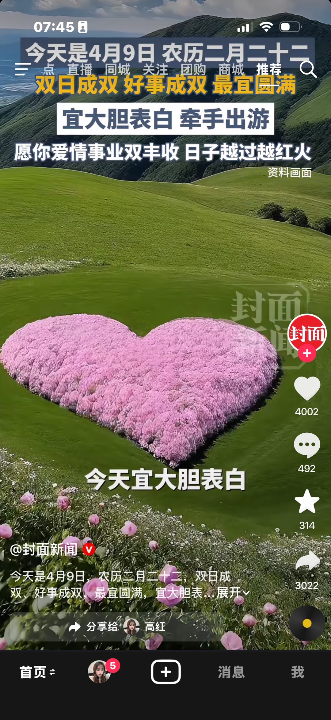 今天宜表白,今天是好运超级加倍,单身续良缘,我就帮你们到这了