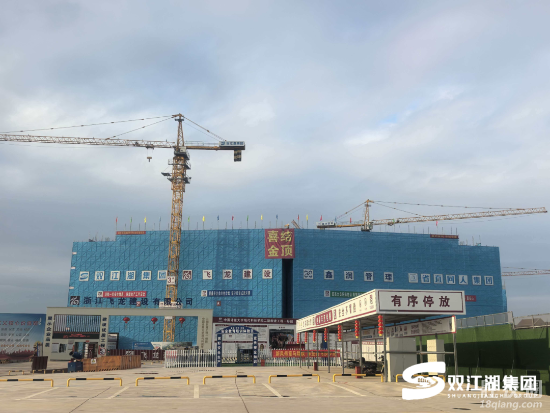 该项目位于义乌双江湖新区科教园区,自2025年9月底开工建设以来,仅用时5个多月便高效完成了总建筑面积约6.3万平方米的主体结构建设,涵盖1号、2号宿舍楼及加建食堂等核心生活配套设施,以“起步即冲刺”的姿态在双江湖畔跑出了建设“加速度”。