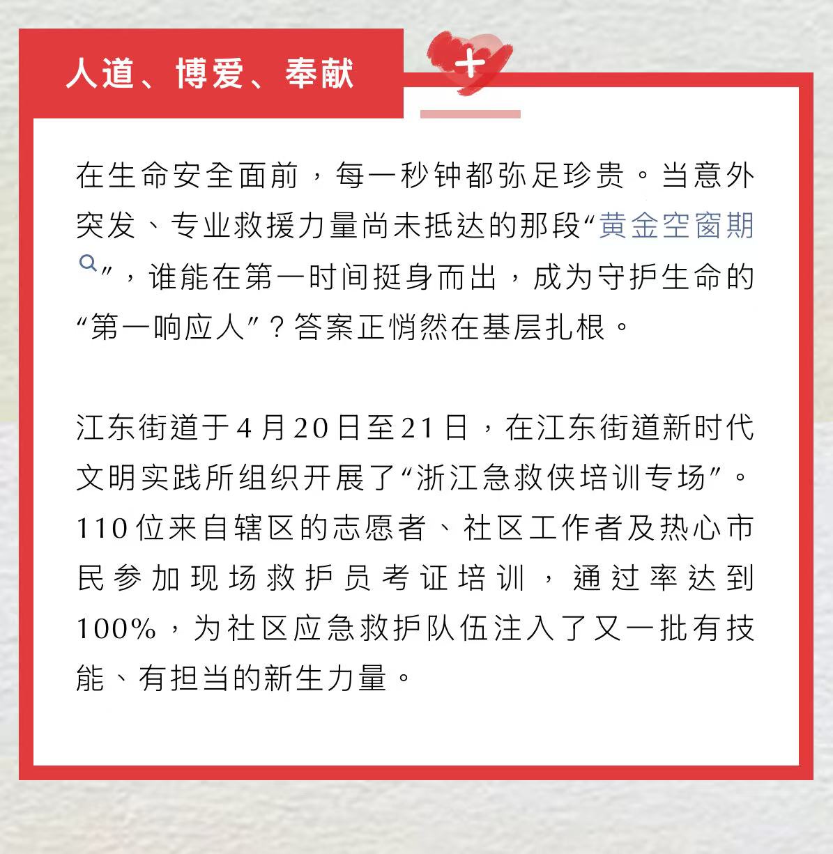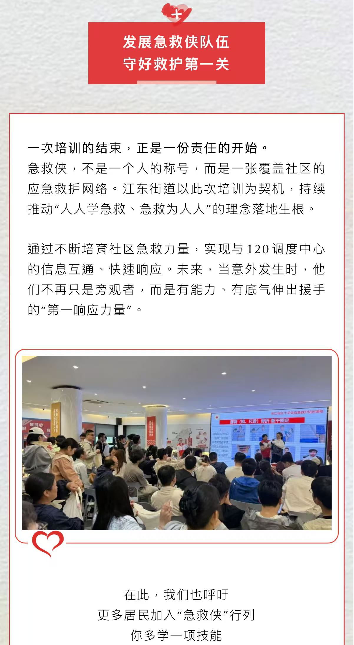 新时代文明实践 | 构筑社区应急第一响应网——浙江急救侠培训江东街道专场圆满完成